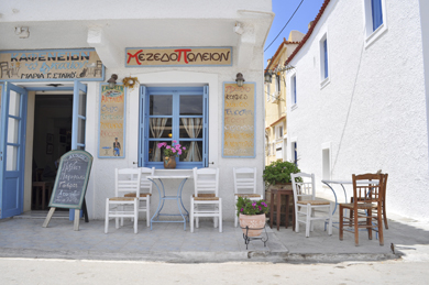 Maria Staikos café i byn Ermioni, nära Manaki Golds olivlundar.