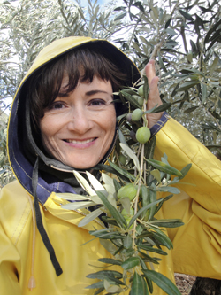 Tintin Blackwell kollar oliverna en regnig oktoberdag.