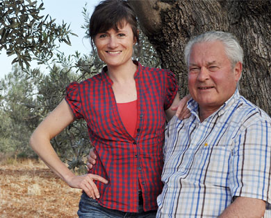 Tintin Blackwell är den som startat och driver Manaki Gold. Här på bild med hennes pappa Bruce Blackwell som är Katafykilundens ägare. Båda känner en stark kärlek till Grekland och är mycket matintresserade. Tintin är född i Grekland, uppvuxen i Schweiz, bor för närvarande i Malmö och arbetar till vardags som grafisk designer, se www.tintinblackwell.com. Bruce bor och arbetar sedan länge i Genève, Schweiz.